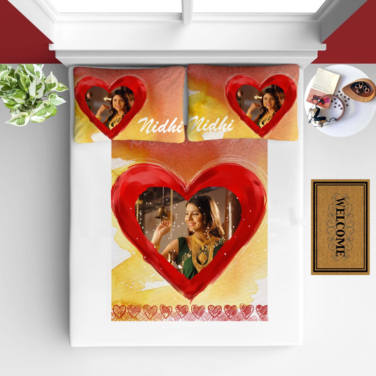Personalised Photo Bedsheet with 2 Pillow Cover Set made with Velvet touch Soft Fabric.