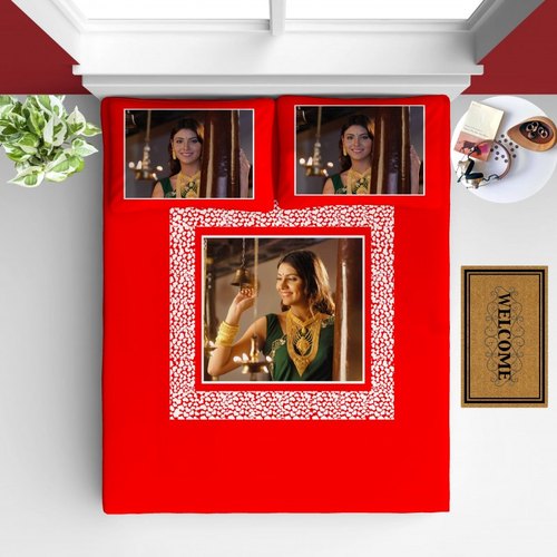 Our Personalized photo bedsheet adds Ambience as well as Luxury. Because personalized photo bed sheets with 2 Pillow Cover, made with Good Quality Velvet touch Soft Fabric.