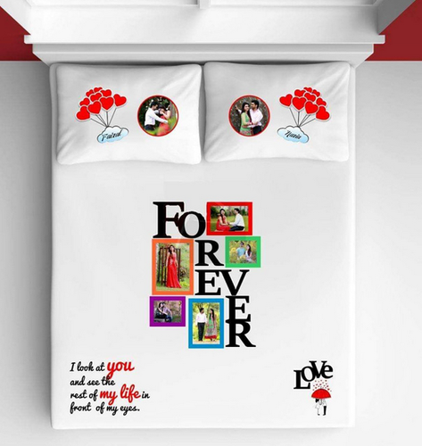 Personalized Photo Bedsheet White Forever with 2 Pillow Cover Set made with Velvet touch Soft Fabric.